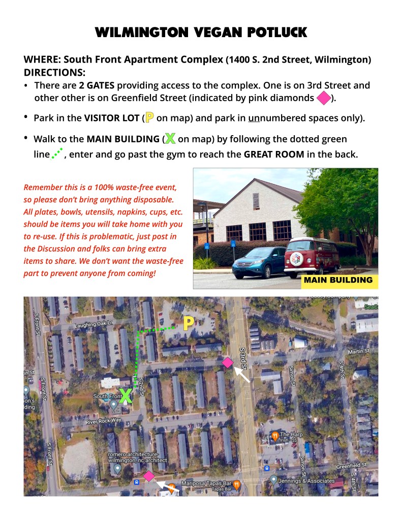 For directions to the South Front apartment complex at 1400 South 2nd Street, Wilmington, see the map below. There is a visitor lot with free parking (un-numbered spaces only).